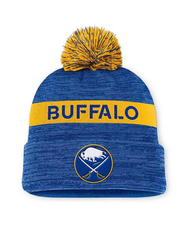Fanatics Men's Royal/Gold Buffalo Sabres Authentic Pro Rink Cuffed Knit Hat with Pom