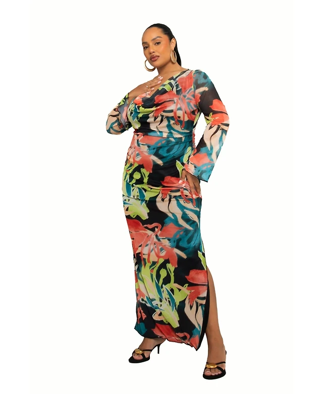 Fashion-szn Curve Women's Floral Print Mesh Maxi Dress