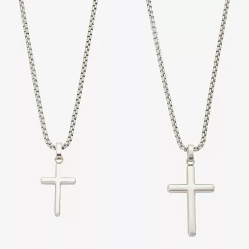 Father & Son Mens Stainless Steel Cross 2-pc. Necklace Set