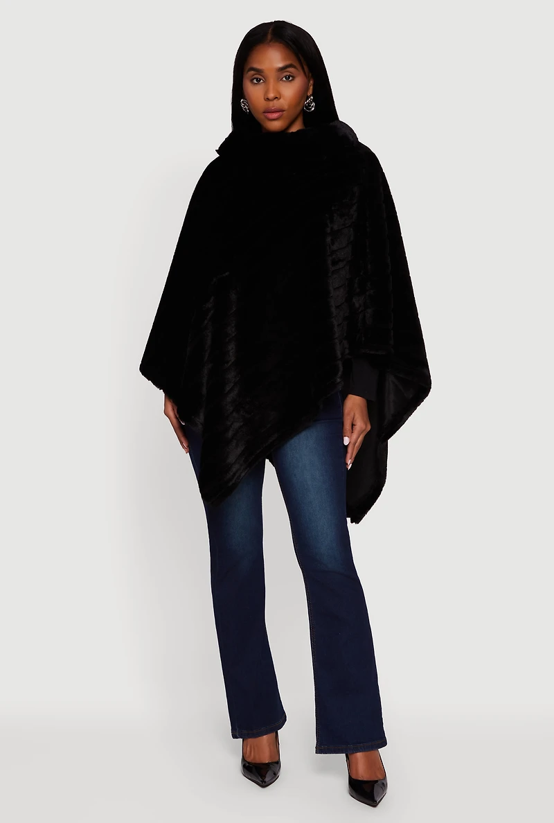 Faux Fur Solid Funnel Neck Poncho in San Juan, PR