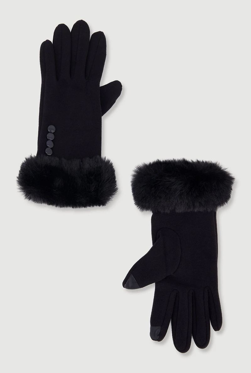 Faux Fur Trim Button Detail Texting Gloves