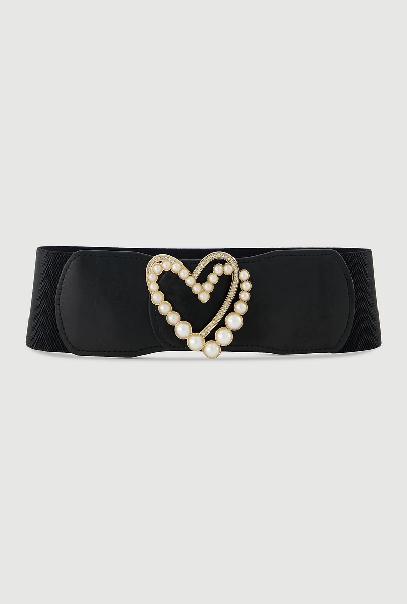 Faux Pearl Rhinestone Metallic Heart Detail Belt