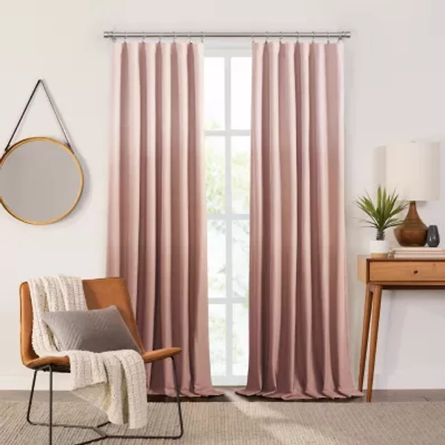 Fieldcrest Devin Flippable Ombre Cotton Chambray Rod Pocket Energy Saving 100% Blackout Single Curtain Panel
