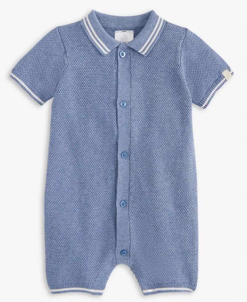 Crafted in comfy cotton, this First Impressions romper features buttons at the front and a stylish striped polo collar