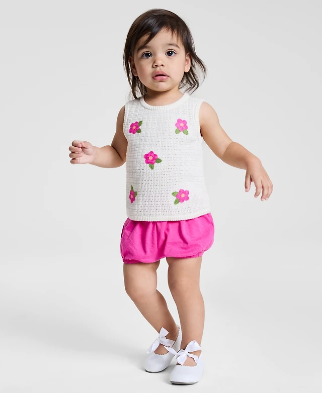 First Impressions Baby Girls Cotton Crochet Flower Top & Shorts, 2 Piece Set, Exclusively at Macy's