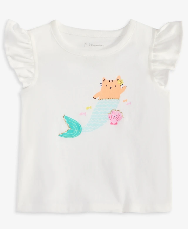 First Impressions Baby Girls Kitty Mermaid Graphic Flutter-Sleeve Top, Exclusively at Macy's