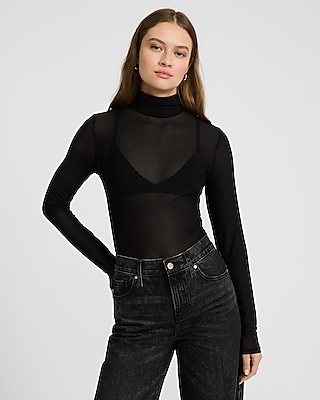 This flirty mesh bodysuit with a mock neck looks great for a night out on the town. Style over a tube top or bralette with denim, pants, or skirts to complete your outfit.