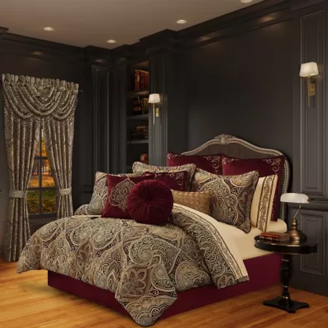 Five Queens Court Bordeaux 4-pc. Damask + Scroll Midweight Comforter Set