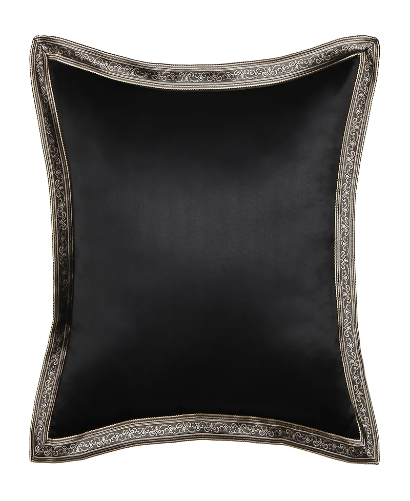 The Harriman Euro Sham is beautifully engineered with a traditional woven stripe flange, paired with a plush black satin fabric. The reverse of this sophisticated pillow sham features a highly detailed woven stripe design and a hidden zipper closure. Designed to coordinate with the Harriman comforter set and accessories (each Euro sold separately).