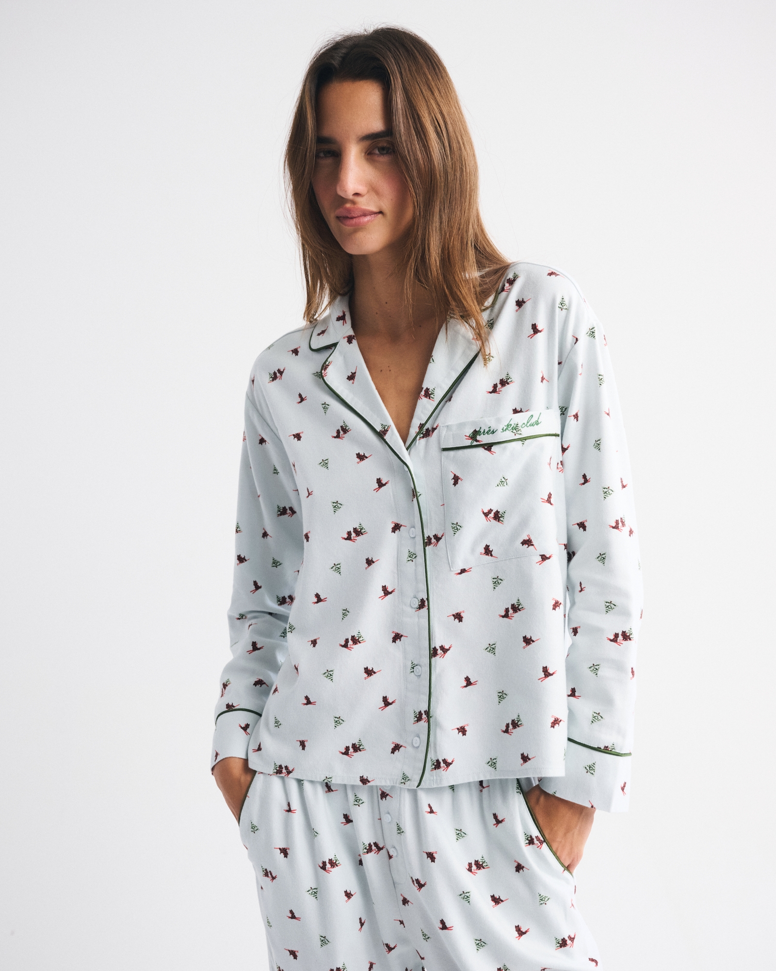 Easy-fitting long-sleeve sleep shirt in our softAF flannel fabric and relaxed-fit silhouette. Features a classic collar, velvet trim details, button-up front and left chest pocket.