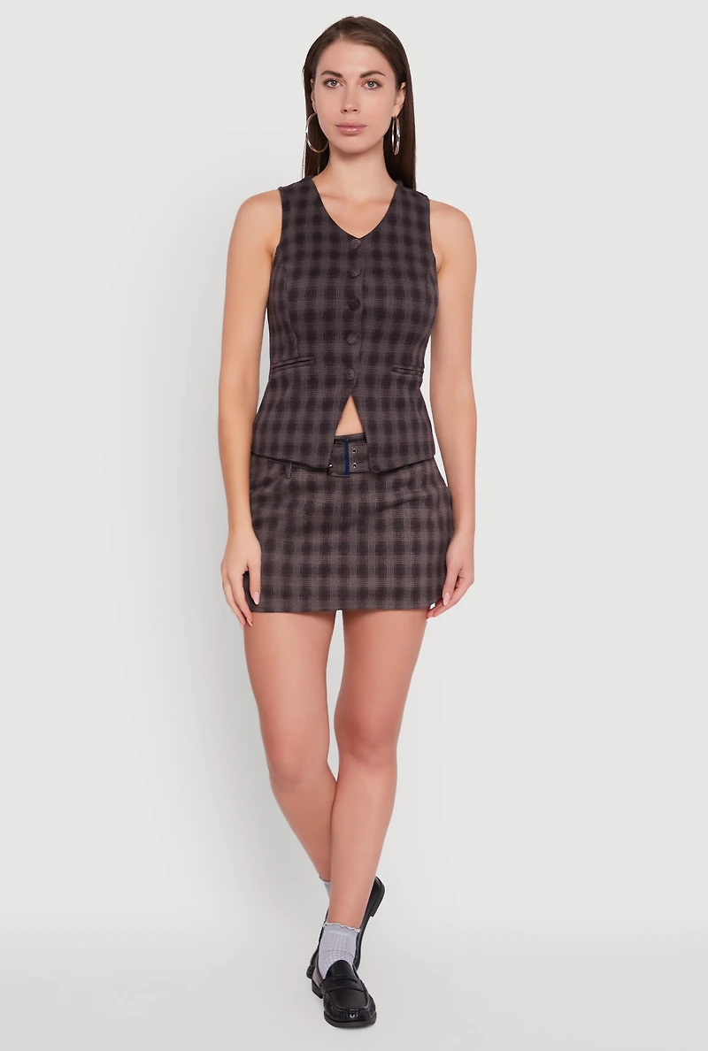 Fleece Lined Plaid Mini Skirt with Belt in San Juan, PR