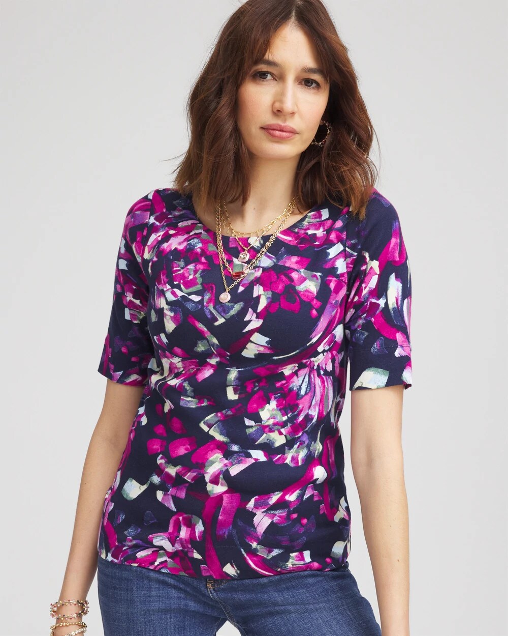Alfred Dunner Women's Floral Stripe Braided Neck Tee