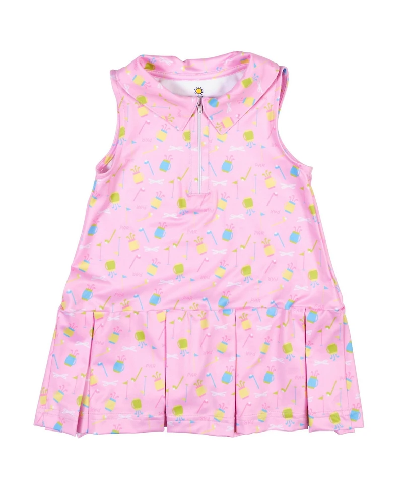 Playful and polished, this dress is crafted from our pink golf print performance knit, offering lightweight stretch and all-day comfort. A front zipper gives it a sporty, easy-to-wear finish, while the pleated skirt adds movement and classic charm.Perfect for vacation outings, sunny-day play, and picture-perfect moments on and off the course.