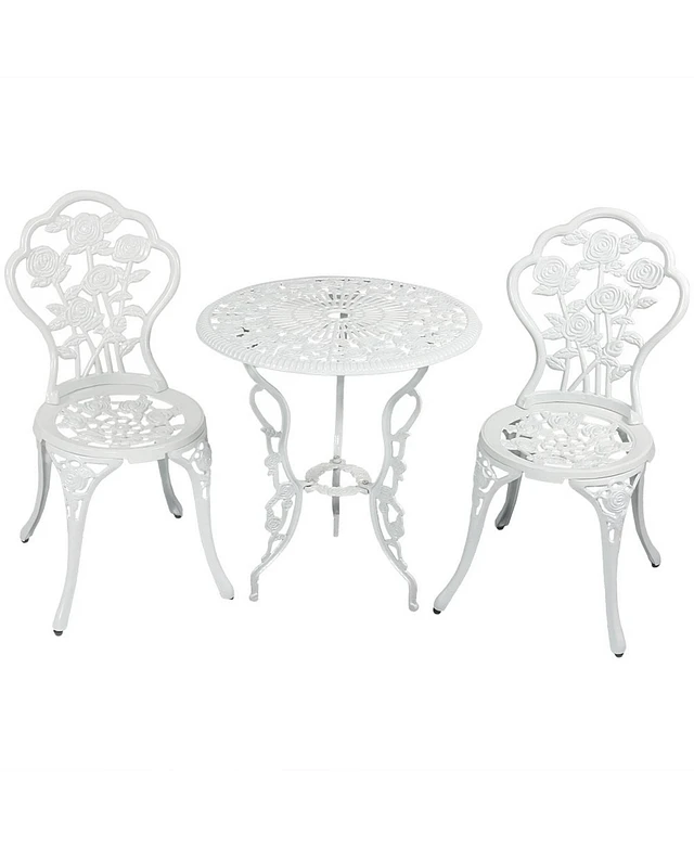 Flower Design Cast Aluminum Bistro Set with Cast Iron Legs, White, 3pc