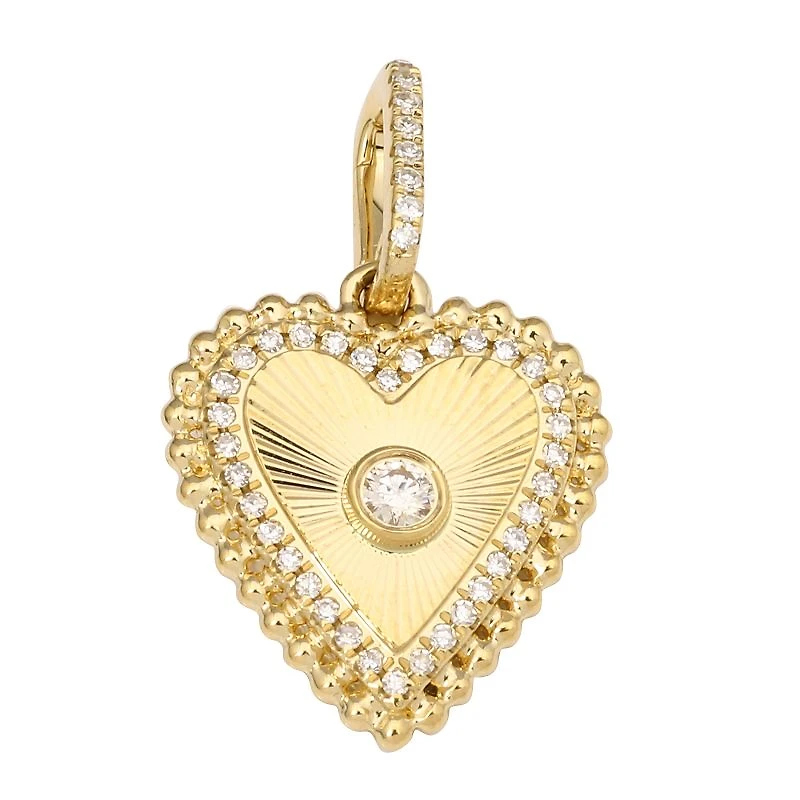 Flutted and Beaded Diamond Heart Pendant 14MM