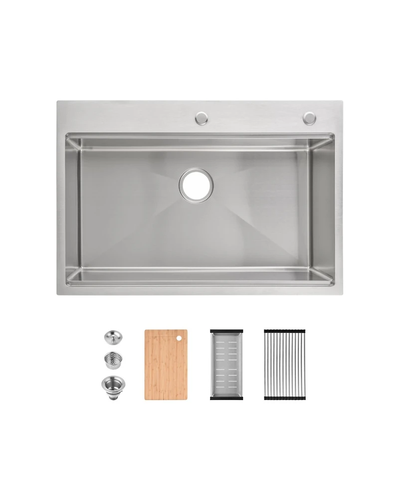 flynama 33inch Overmount Single Bowl Brushed 304 Stainless Steel Kitchen Sink Ss-BR01D-332208 with Cutting Board Roll out Basket