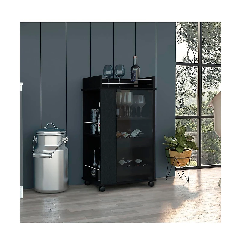 Flynama Beaver Wengue Bar Cart with Glass Door, 2 Side Shelves and Casters in San Juan, PR
