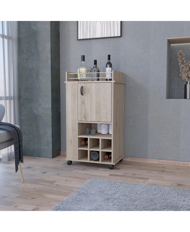 Flynama Light 1-Door Bar Cart with Wine Rack and Casters, Rolling Home Bar Storage Cart in San Juan, PR