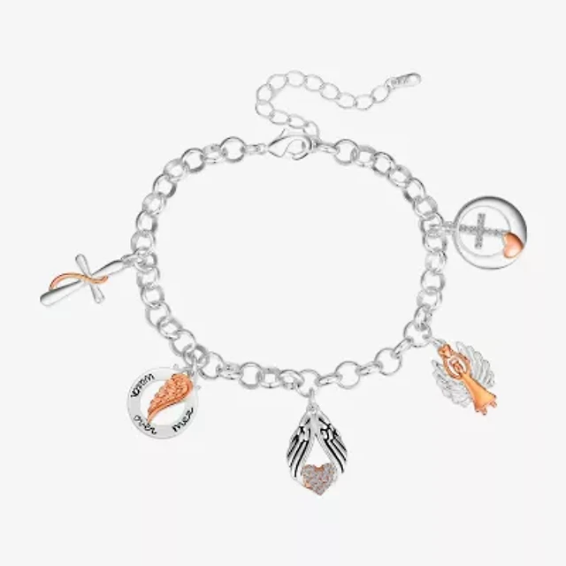 Footnotes Faith Womens Cubic Zirconia 14K Gold Over Brass Pure Silver Over Brass Angel Cross Wing Charm Bracelet