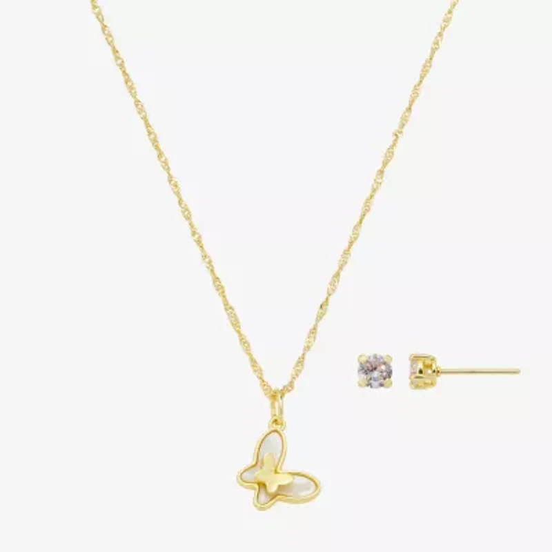 Footnotes Friend Womens Cubic Zirconia 14K Gold Over Brass Butterfly 2-pc. Jewelry Set