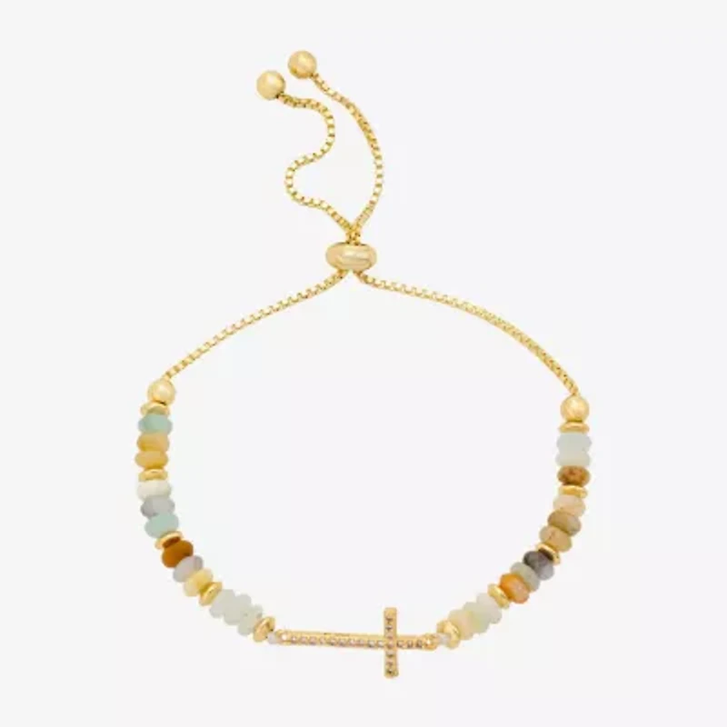 Footnotes Womens Champagne Amazonite 14K Gold Over Brass Cross Bolo Bracelet