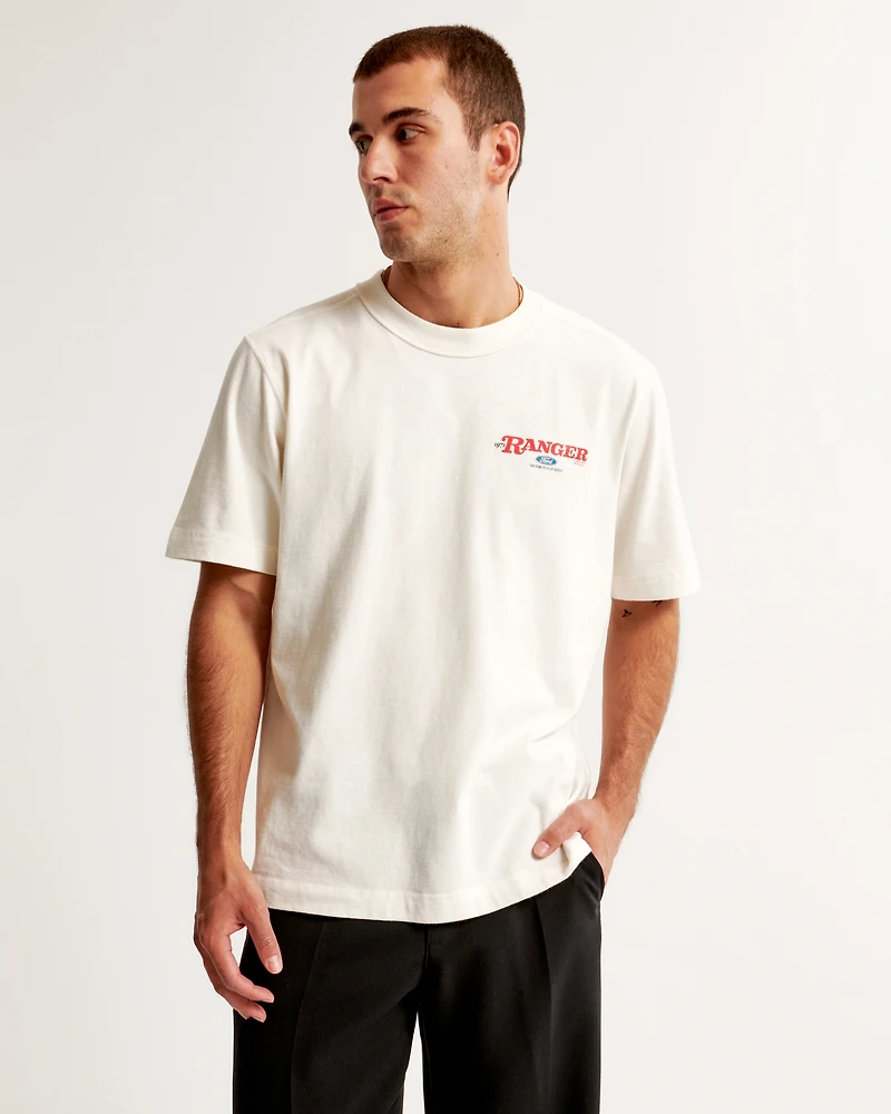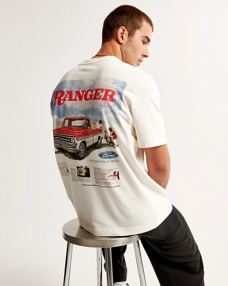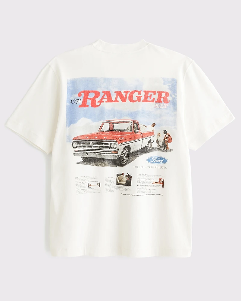 Our new short-sleeve tee in our softAF 180g fabric and vintage oversized-fit silhouette, featuring Ford Ranger-inspired graphic detail at left chest and back, reverse seaming details, crew neckline and straight hem.