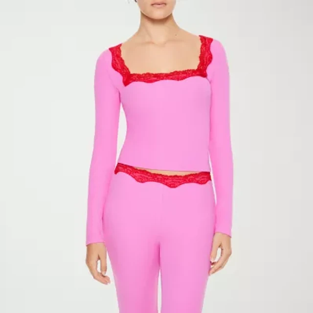 Forever 21 Lace Trim Womens Juniors Square Neck Long Sleeve T-Shirt