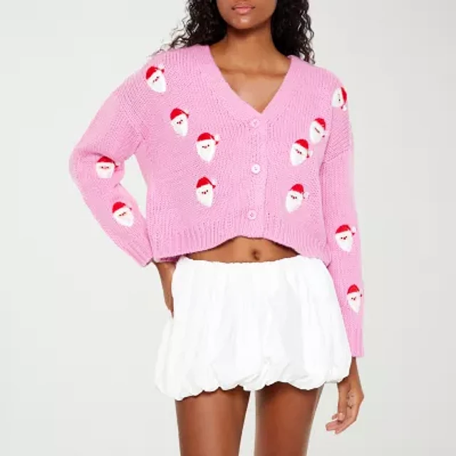 Forever 21 Santa Womens V Neck Long Sleeve Button Cardigan Juniors