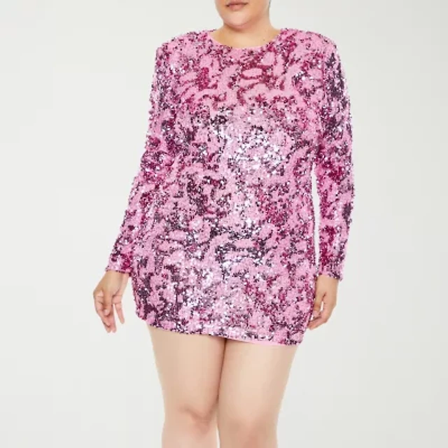 Forever 21 Womens Juniors Plus Long Sleeve Sequins Bodycon Dress
