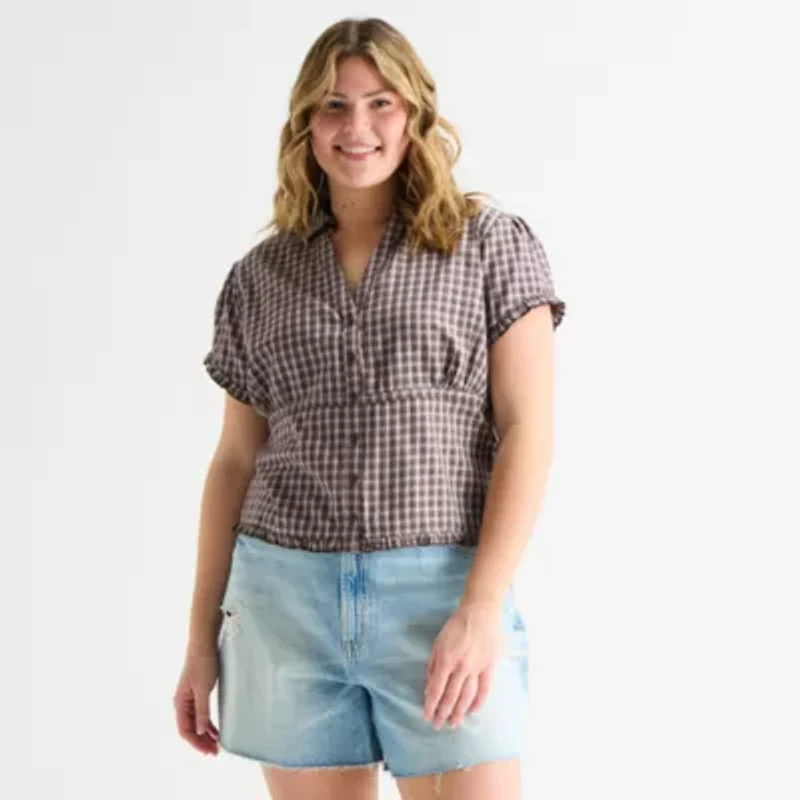 Forever 21 Womens Juniors Plus Short Sleeve Button-Down Shirt
