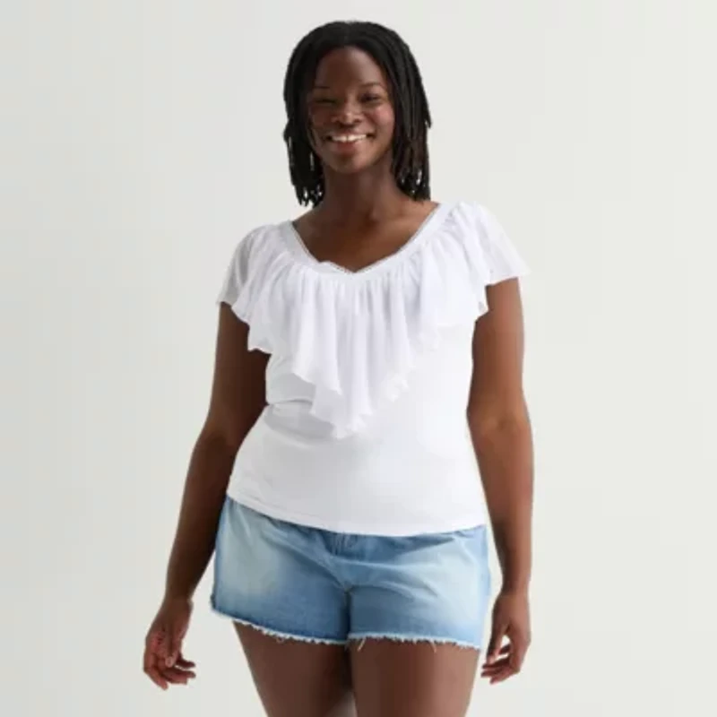Forever 21 Womens Juniors Plus V Neck Short Sleeve T-Shirt
