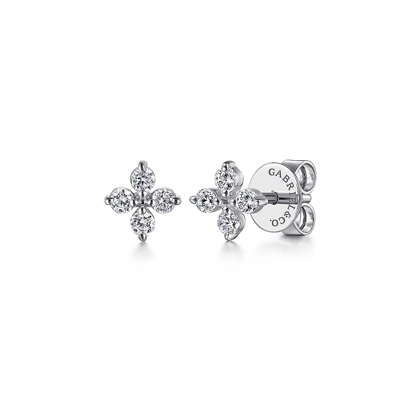 Four Petal Diamond Clover White Gold Stud Earrings