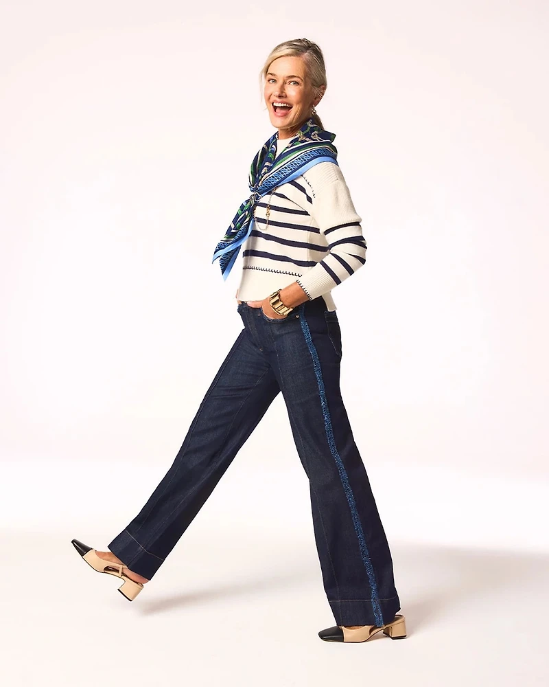 You will love this new dressed-up denim design. Made with a dark rinse denim, featuring our proprietary So Slimming® technology that smooths and slims your shape—great for inspiring added confidence. You will love this frayed side seam and pocket design with clean hems.