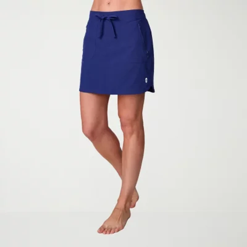 Stay stylish and confident in or by the water wearing this women's swim skirt by Free Country designed for a flattering fit. It's crafted from stretch woven fabric with UV-protection and quick-dry technology, and it features an elastic-drawstring waist, side zip pockets, and built-in shorts for full coverage.