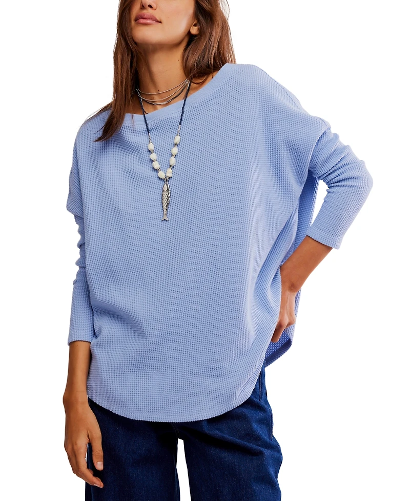 Stay stylish and warm in this thermal top from Free People, featuring a pull on design with long sleeves and a slouchy fit. Crafted from soft waffle knit fabric, it is finished with a classic crewneck. Featured in the perfect billowy fit, this oversized thermal from We The Free is all you need for endless laidback outfitting.