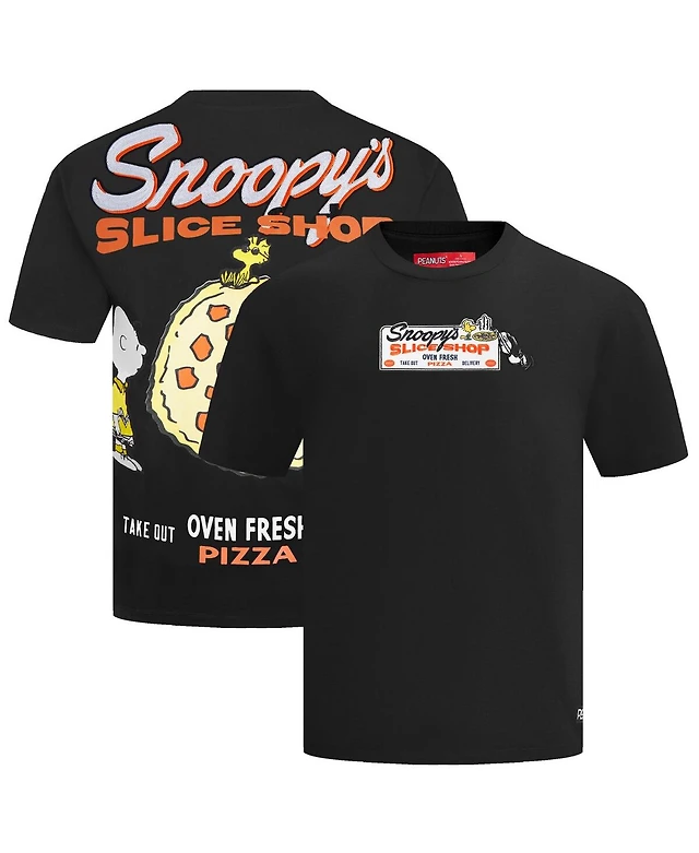 Freeze Max Men's Black Peanuts Snoopy's Slice Shop T-Shirt