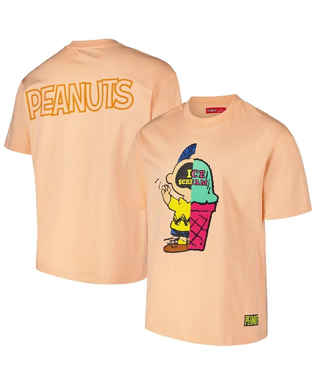 Freeze Max Men's Orange Peanuts Charlie Brown Ice Scream Loose Fit T-Shirt