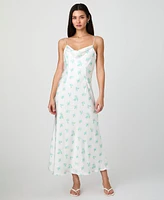 A dainty floral print blooms so beautifully throughout shiny satin on this charming French Connection midi dress.