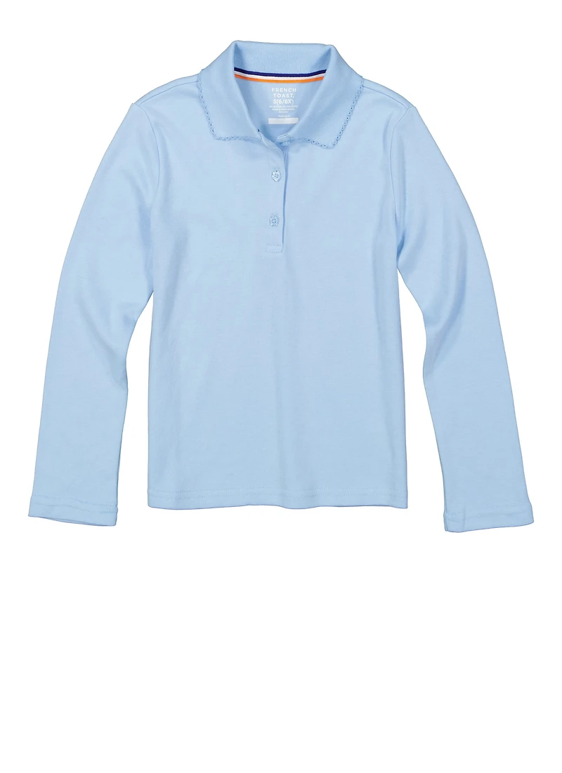 French Toast Girls 4-6x Picot Collar Interlock Long Sleeve Polo