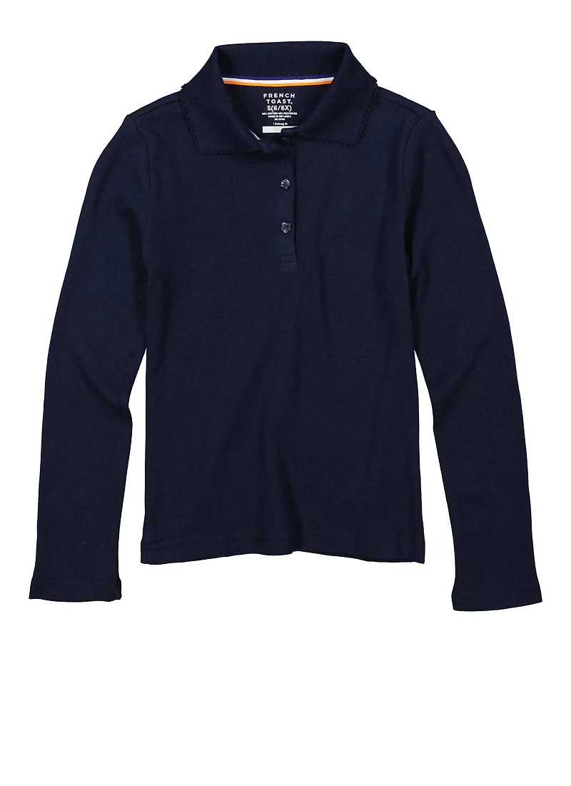French Toast Girls 4-6x Picot Collar Interlock Long Sleeve Polo Shirt