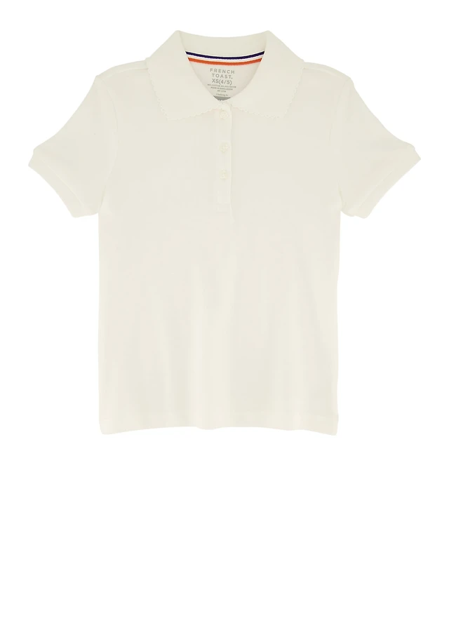 French Toast Girls 4-6x Picot Collar Interlock Polo Shirt, White, Size 6-6X