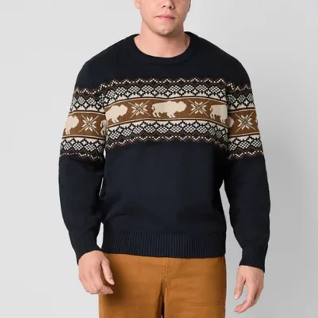 Frye and Co. Fairisle Big Tall Mens Crew Neck Long Sleeve Pullover Sweater