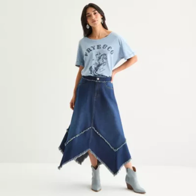 Frye and Co. Hanky Hem Womens Midi Denim Skirt