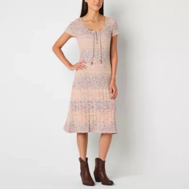 Frye and Co. Womens Short Sleeve Midi Fit + Flare Dress