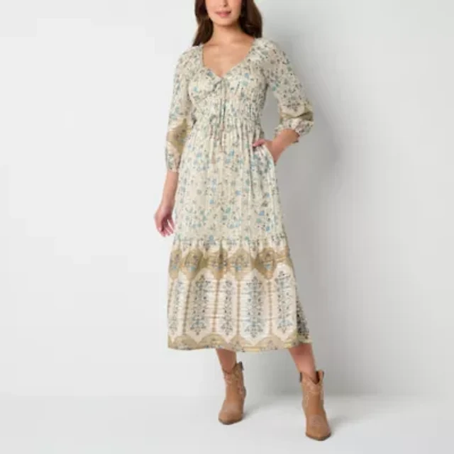 Frye and Co. Womens 3/4 Sleeve Floral Midi Maxi Dress