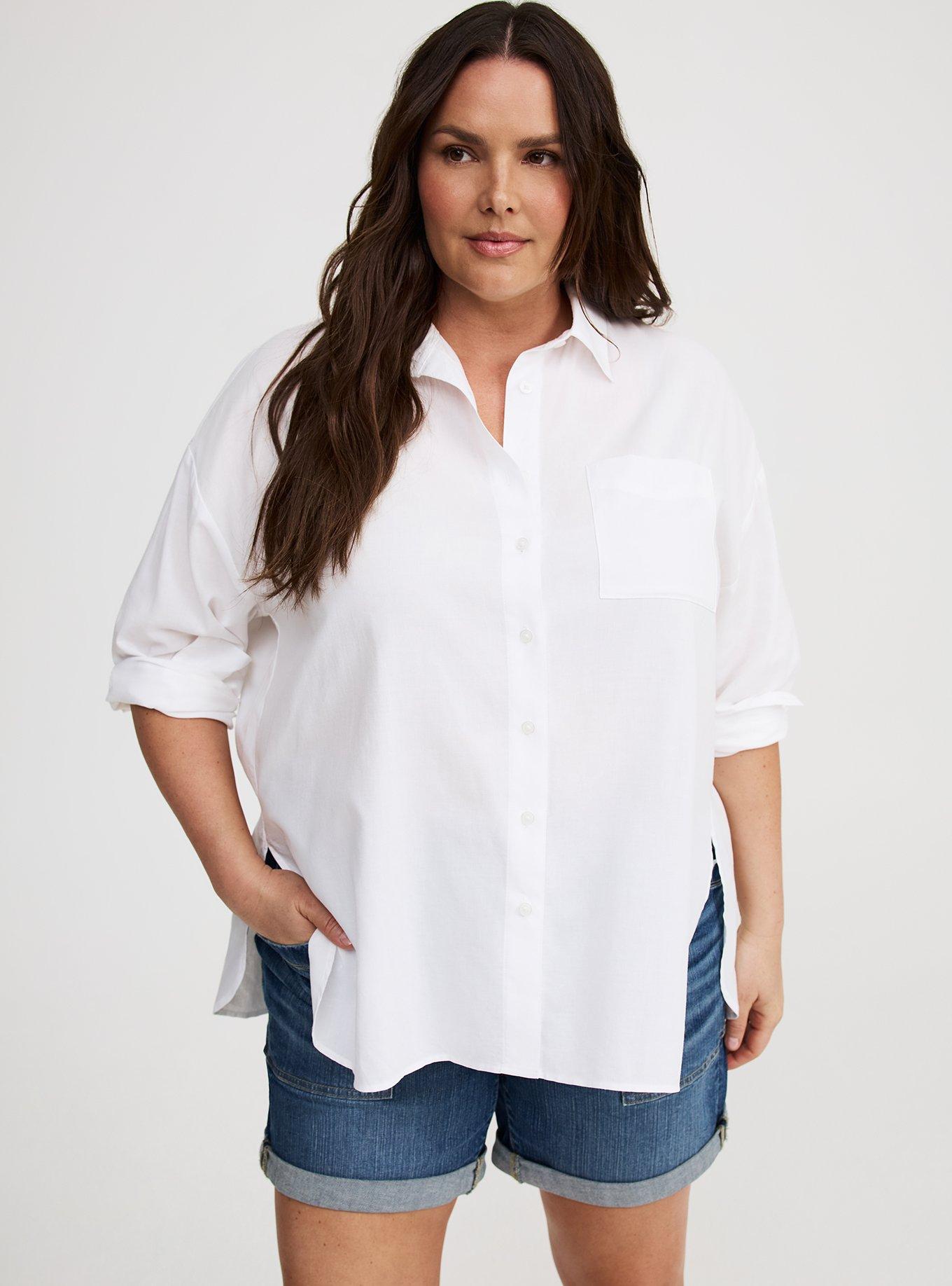 St. John's Bay Womens Plus Roll Tab Long Sleeve Regular Fit Button-Down Shirt