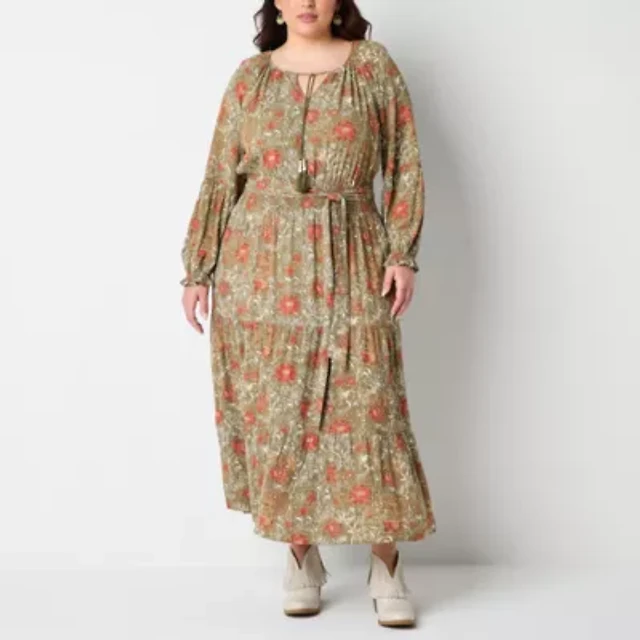 Frye and Co. Womens Plus Long Sleeve Floral Maxi Dress