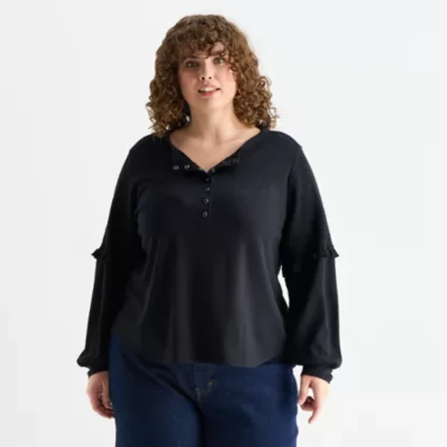Frye and Co. Womens Plus Y Neck Long Sleeve T-Shirt