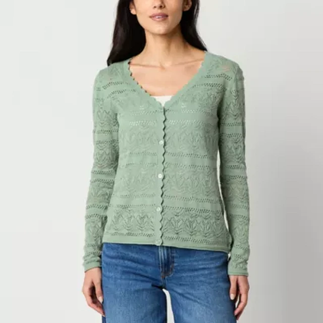 Frye and Co. Womens V Neck Long Sleeve Button Cardigan