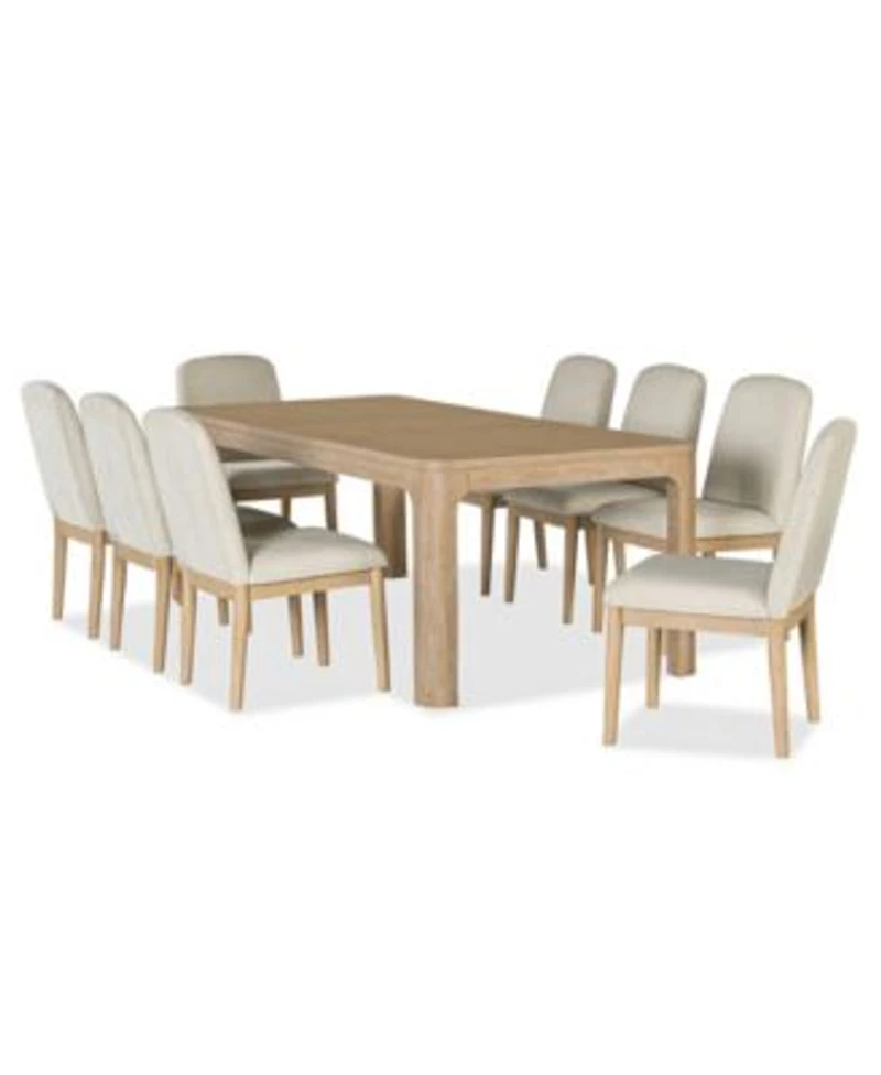 This rectangular leg table is crafted with a beautiful weathered look that highlights the gorgeous grain. Matched with an inviting and soft upholstered seat that adds to its comfort. With clean lines and firm curves, this collection makes a warm, modern addition to your space.
